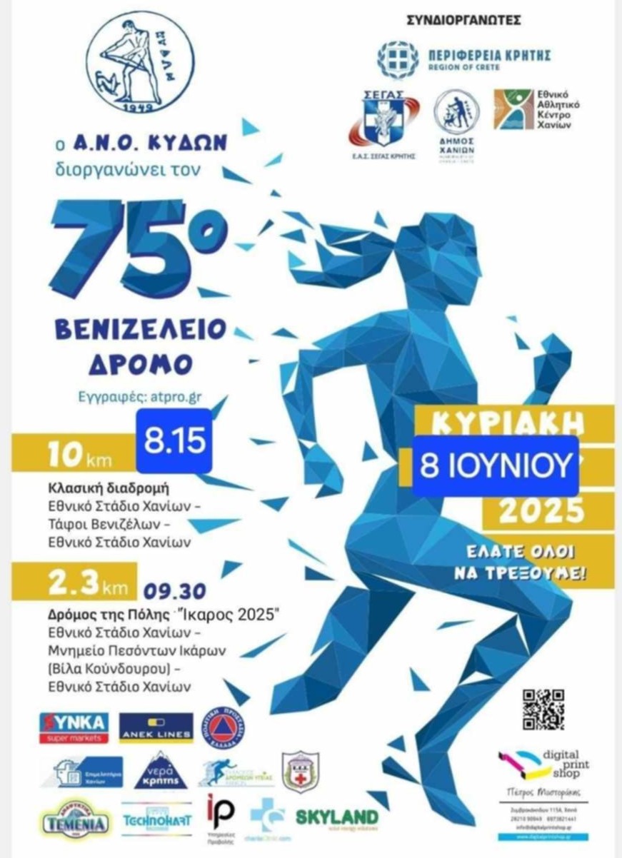 Ο Αθλητικός Όμιλος Χανίων «Ο ΚΥΔΩΝ» προκηρύσσει τη διεξαγωγή των καθιερωμένων αγώνων δρόμου: